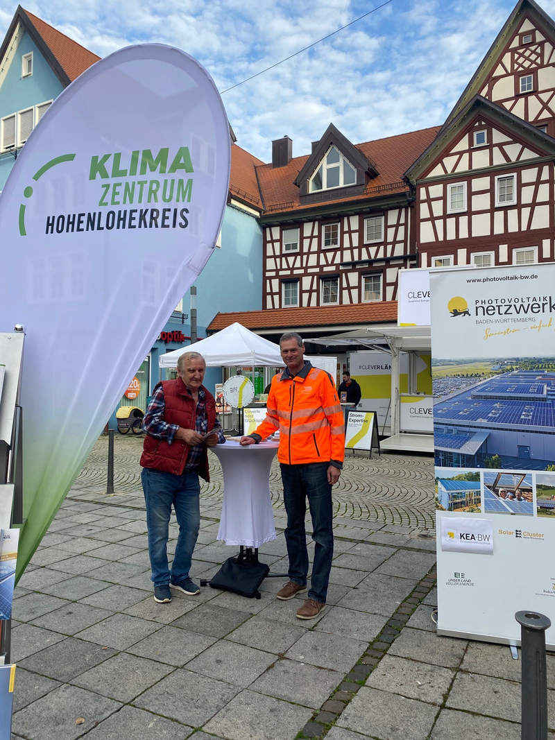 Bei strahlendem Sonnenschein präsentierte sich zum ersten Mal am 28. Oktober 2022 das Klima-Zentrum mit einem Informationsstand auf dem Künzelsauer Simon-Jüdä-Krämermarkt.
