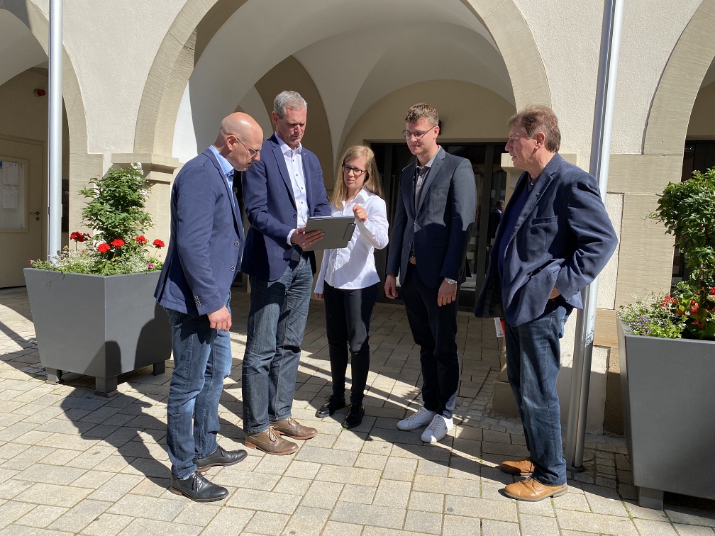 In Sachen Klimaschutz gibt es im Hohenlohekreis noch viel zu tun. Gemeinsam packen (v.l.n.r.) der Geschäftsführer der Abfallwirtschaft Hohenlohekreis, Sebastian Damm, Joachim Schröder und Janina Schüßler vom Klima-Zentrum sowie Forchtenbergs Bürgermeister Michael Foss und Dr. Wolfgang Eißen, designierter Vorsitzender des Klimabeirats im Landkreis, das Thema an.